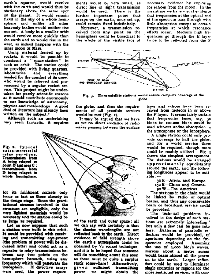 geostationary orbits. (Wireless World, October 1945, pages