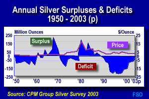 including projected deficits for 2003. Annual silver deficits have run as high